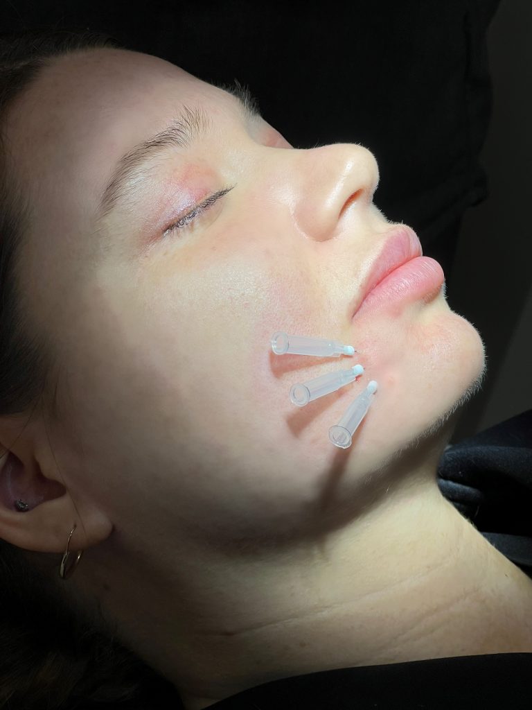 These threads can be placed almost anywhere on the body that tightening and/or volume are desired. They can also be used to enhance other treatments – such as Botox in the glabella to help smooth the area, in the edges of the lips to create a well-defined border, or to accentuate the peak of the lip when getting lip filler. Threads can also be placed in the neck to help soften necklace lines, known as ‘tech neck’, or used below the chin to help with skin tightening. Smooth filler PDO threads can also work beautifully when placed in the abdominal skin or above the knees to help tighten crepey skin.