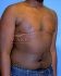 This young patient had a very advanced case of gynecomastia in which his breasts were not only larger than desired, but also feminized. While many cases of gynecomastia regress with time, there was no possibility that this was going to correct itself. He had a “free nipple graft” breast reduction in which the entire breast was removed and the nipple and areolae were sewn back in place as a skin graft. He has had a dramatic transformation in his chest appearance so far. The scars will fade a bit with time and the slight hypopigmentation of the nipple graft should normalize in the next 6 months.